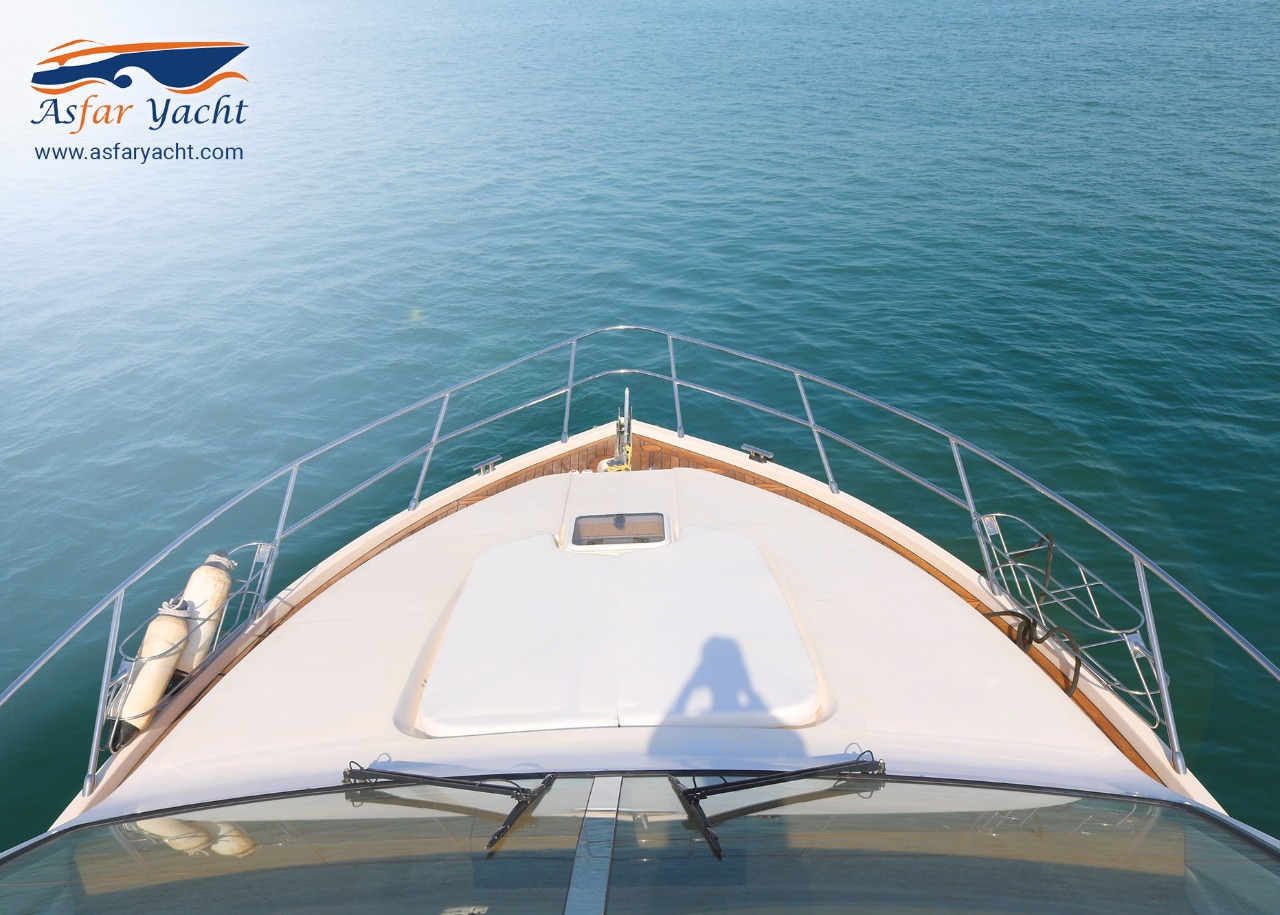 withe boat trip dubai 56-foot Majesty is a world-class, high-performance motor yacht with luxurious fittings and furnishings that can adapt to all cruising grounds and conditions with comfort and safety. The yacht features the following: