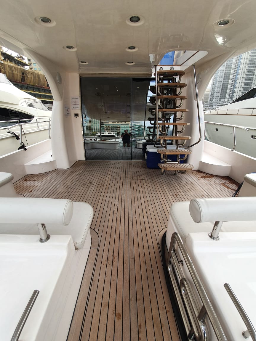The huge flybridge offers ample dining as well as sun tanning space besides containing barbecue grill and Jet Ski. The atmosphere is rich and cozy boasting exclusivity.