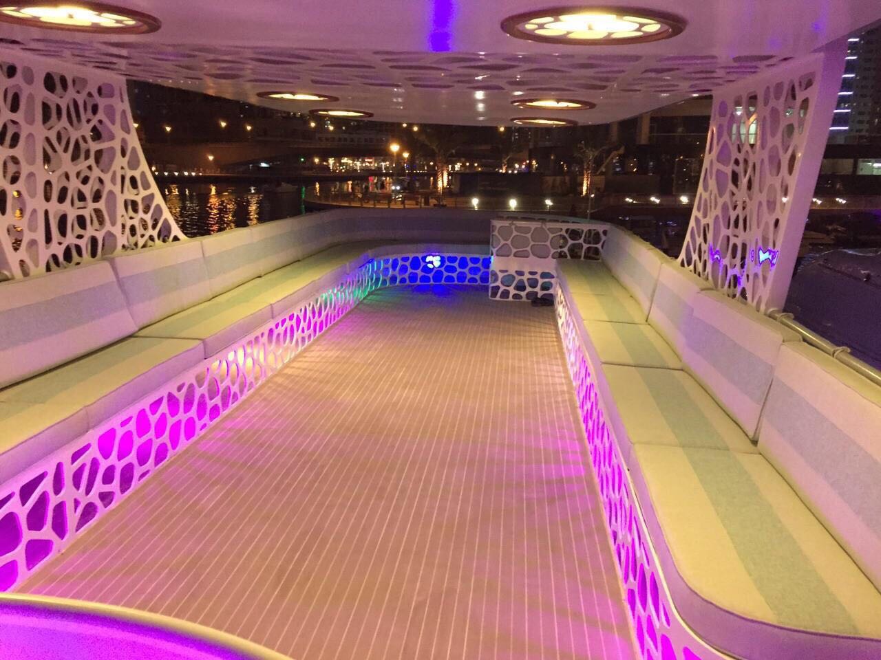 From above its three-level deck, eighty-foot waterline length, you will have a breathtaking overview of the magnificent waters of Dubai flanked by the most exotic landmarks and neat and clean beaches of the city. The total surface area of the deck is 200 sq. m which makes the ideal watercraft for throwing parties or celebrating events onboard.